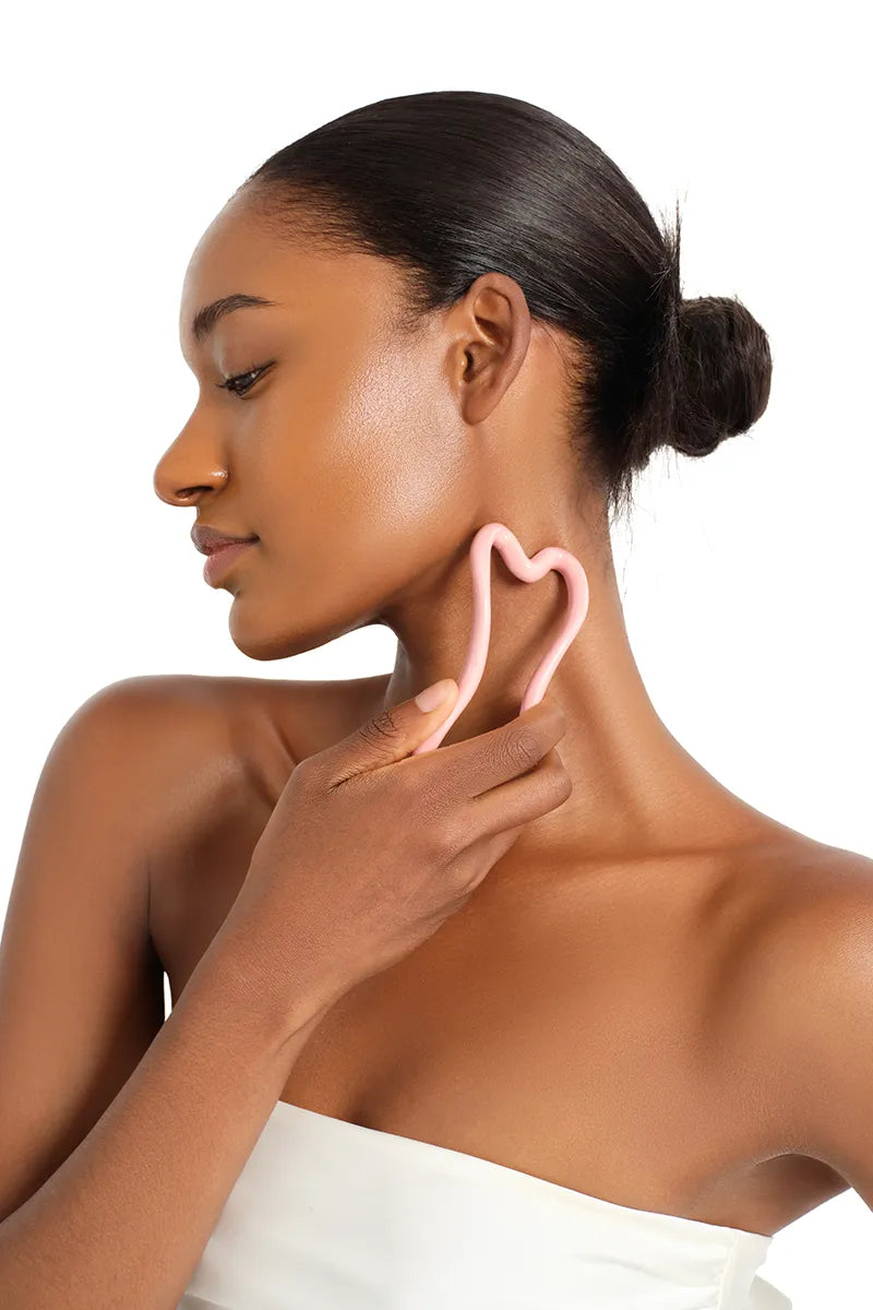 2.Using the CCLING CORESET SCULPT, gently glide along facial contours: jawline, cheeks, temples, eye area, forehead, and scalp.